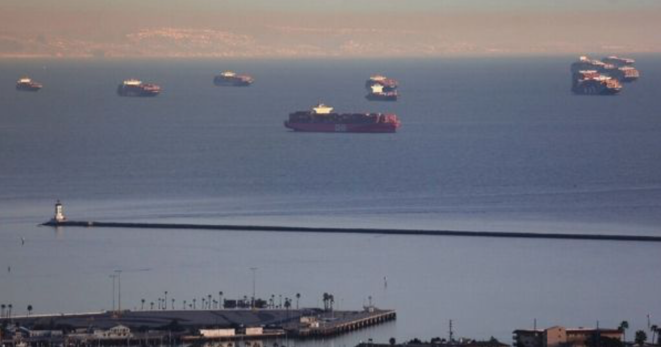 Tàu container xếp hàng dài tại cảng Los Angeles